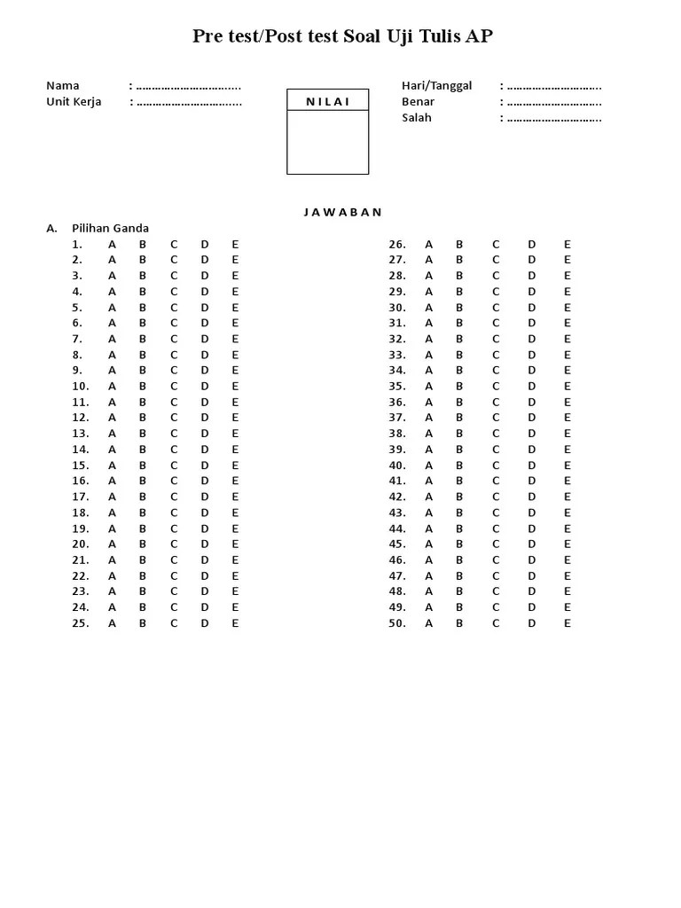 Contoh Lembar Jawaban Pilihan Ganda 40 Soal / Contoh Soal Pilihan Ganda Html Urasmi : Isi identitas anda pada lembar jawaban ujian sekolah berstanndar nasional.